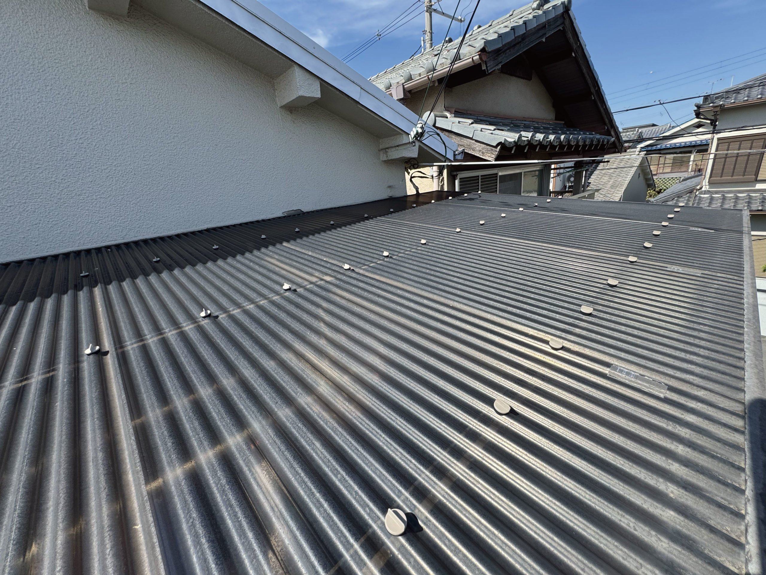 そこで、既存のポリカ波板を撤去し、骨組みに溜まった埃や土を丁寧に清掃。